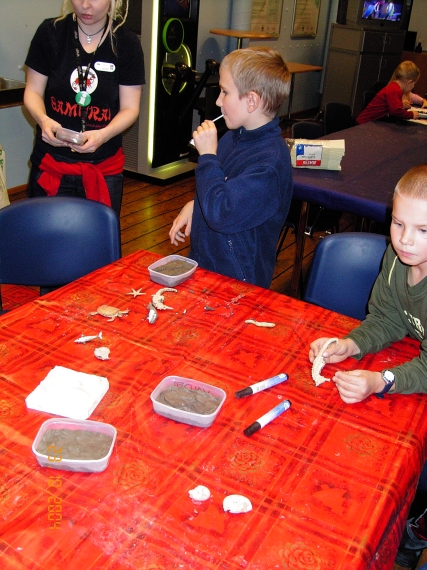 Savi sisse suruti jäljendid, millele hiljem vedel kips peale valati. Kodus selgus, et ühe kivistise seljal on ka kiri made in China :-)